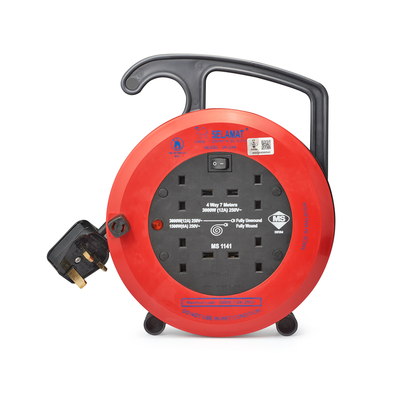 4 Gang Portable Cable Reel Cable Length: 7M (1.25mm² x 3C) Max. Load: 3000W