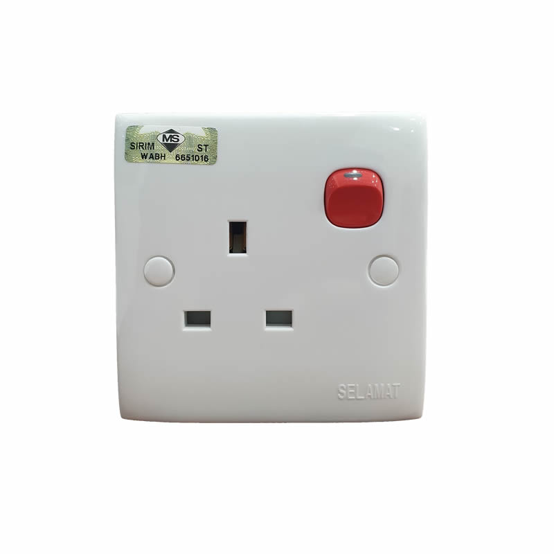 13A 1 gang switch socket outlet with red rocker 13A 250V