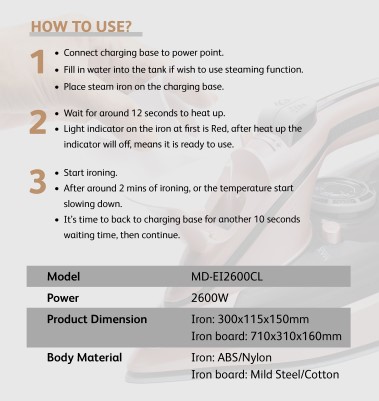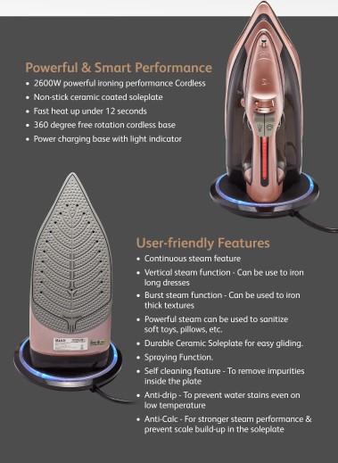 * 2600W powerful ironing performance